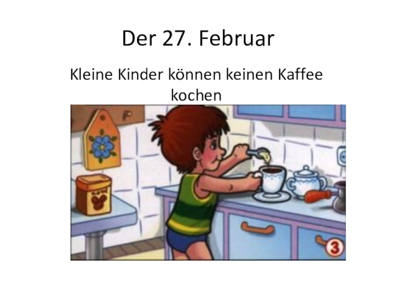 Der 27. Februar Kleine Kinder können keinen Kaffee kochen