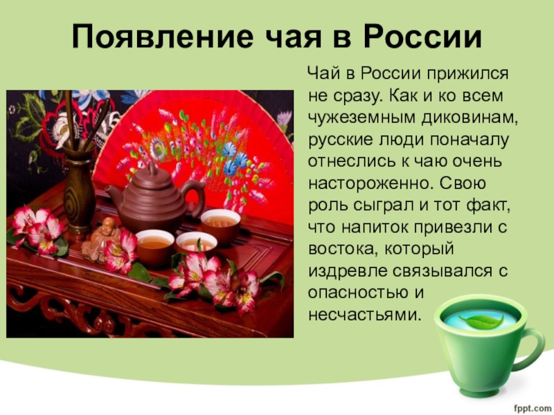 Как и ко всем чужеземным диковинам, русские люди поначалу отнеслись к чаю очень настороженно. Свою роль сыграл и тот факт, что напиток привезли с востока, который издревле связывался с опасностью и несчастьями.