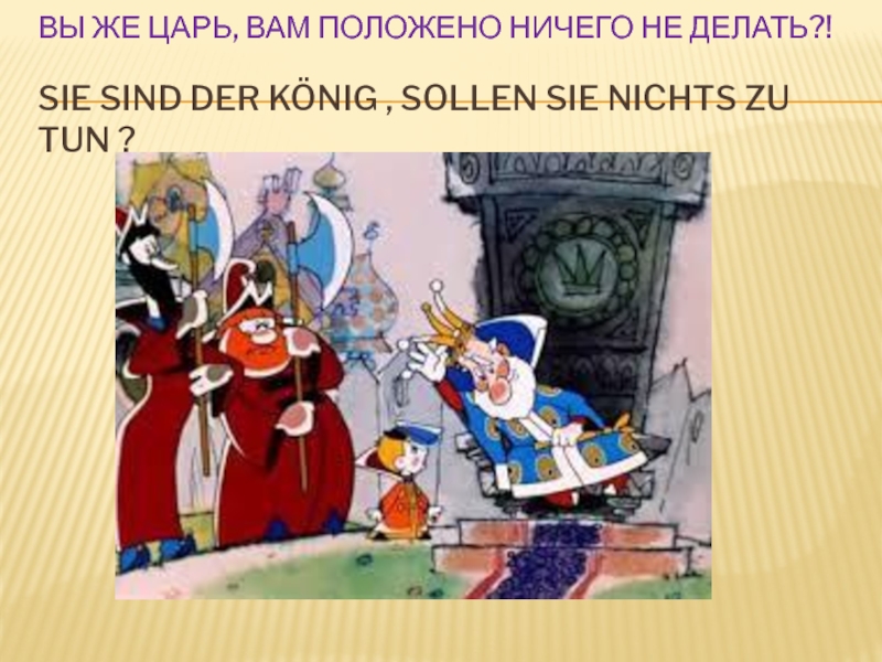 Слайд 3ВЫ же царь, вам положено ничего не делать?! Sie sind der König