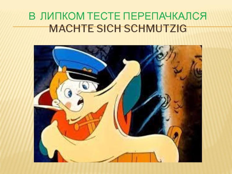 Слайд 8В липком тесте перепачкался machte sich schmutzig