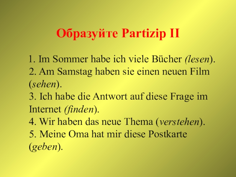 3. Der Vater hat mein Buch (genehmen, nehmen, genommen).