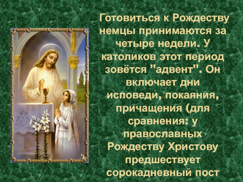 Слайд 7Готовиться к Рождеству немцы принимаются за четыре недели. У католиков этот