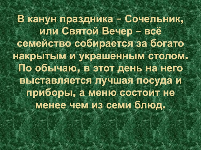 В канун праздника – Сочельник, или Святой Вечер – всё семейство