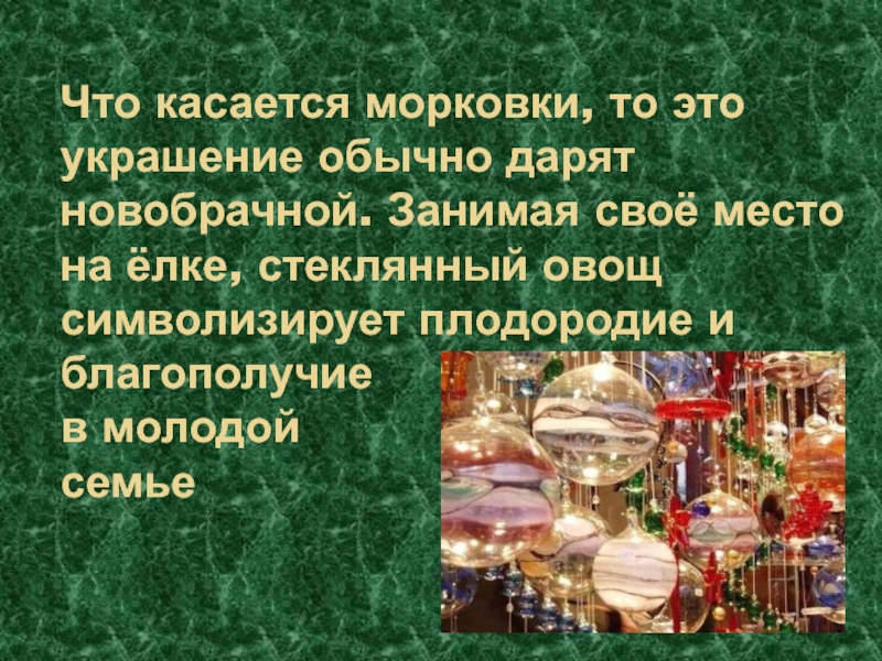 место на ёлке, стеклянный овощ символизирует плодородие и благополучие