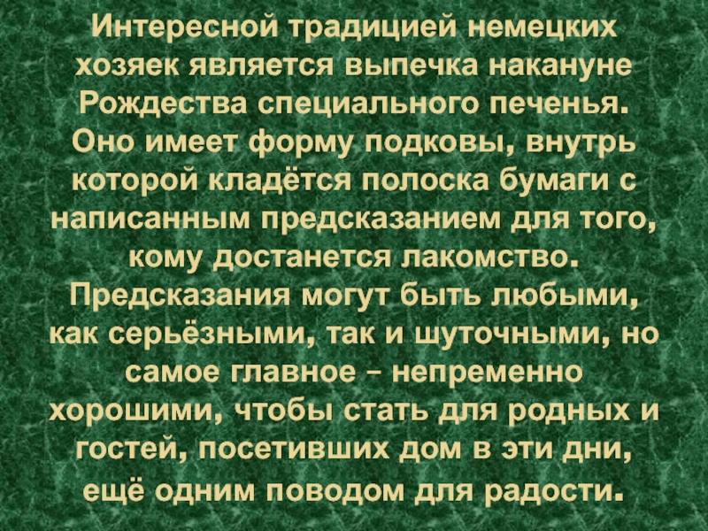 Интересной традицией немецких хозяек является выпечка накануне Рождества специального печенья. Оно