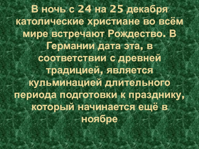 Слайд 3В ночь с 24 на 25 декабря католические христиане во всём