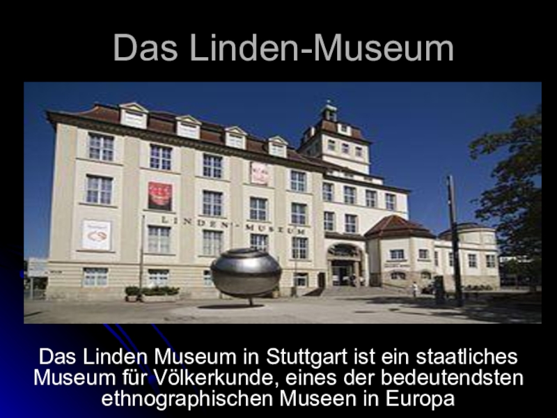 Das Linden-Museum Das Linden Museum in Stuttgart ist ein staatliches Museum für Völkerkunde, eines der bedeutendsten ethnographischen