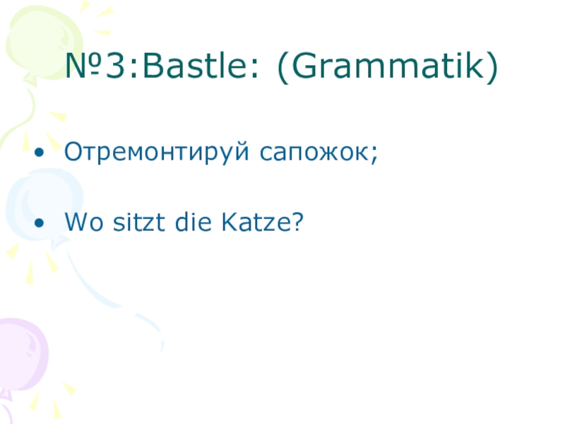 №3:Bastle: (Grammatik) Отремонтируй сапожок; Wo sitzt die Katze?