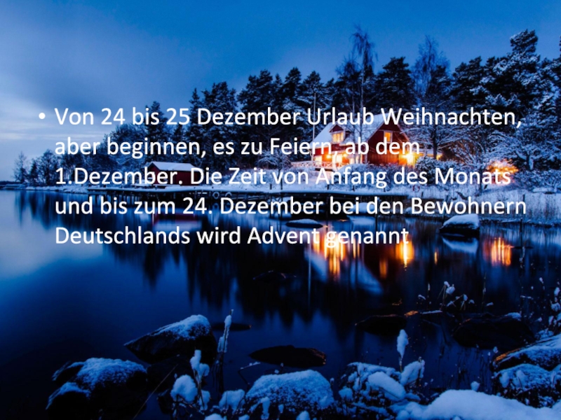 Слайд 2Von 24 bis 25 Dezember Urlaub Weihnachten, aber beginnen, es zu