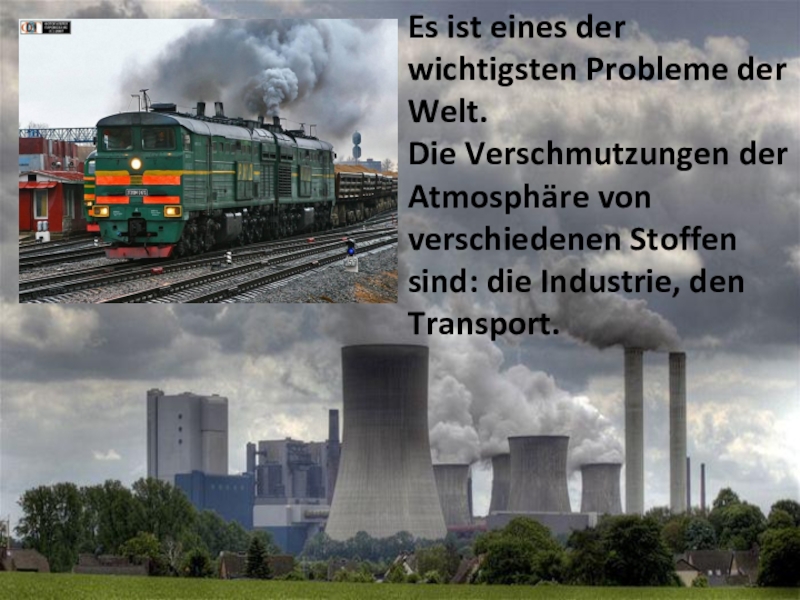 Слайд 5Es ist eines der wichtigsten Probleme der Welt.  Die Verschmutzungen der Atmosphäre