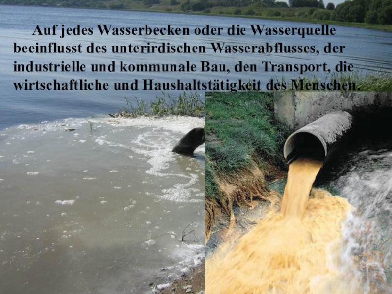Слайд 8Auf jedes Wasserbecken oder die Wasserquelle beeinflusst des unterirdischen Wasserabflusses, der