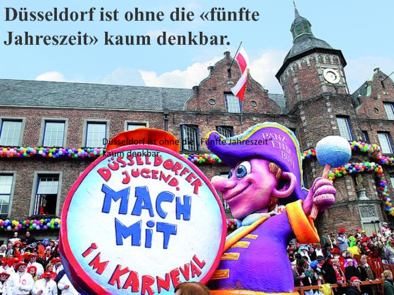 Слайд 9Düsseldorf ist ohne die „Fünfte Jahreszeit“ kaum denkbar.