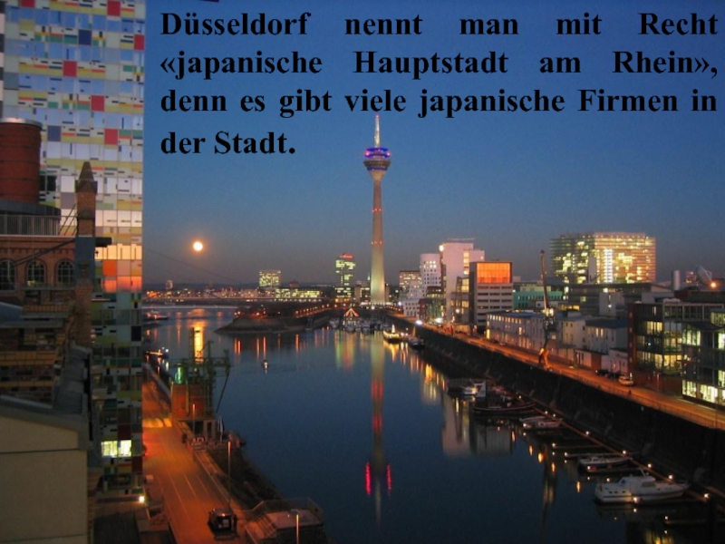 Слайд 6Düsseldorf nennt man mit Recht «japanische Hauptstadt am Rhein», denn es