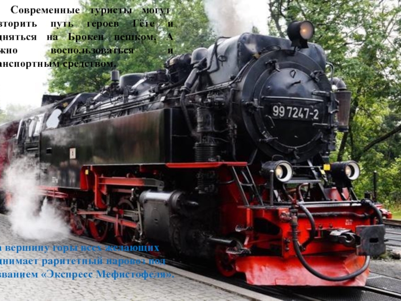На вершину горы всех желающих поднимает раритетный паровоз под названием «Экспресс Мефистофеля».