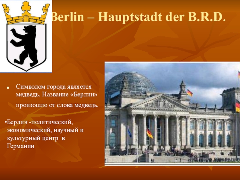 Берлин -политический, экономический, научный и культурный центр в Германии