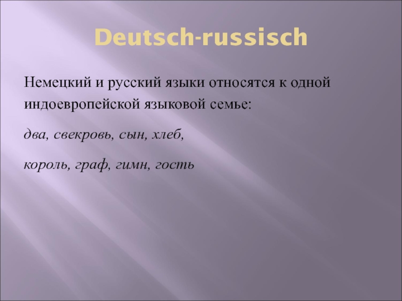 Немецкий и русский языки относятся к одной индоевропейской языковой семье:
