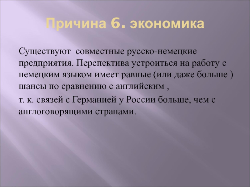 т. к. связей с Германией у России больше, чем с англоговорящими странами.
