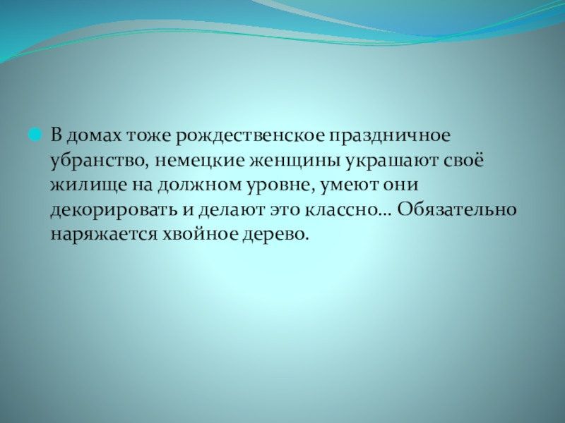 Слайд 6В домах тоже рождественское праздничное убранство, немецкие женщины украшают своё жилище