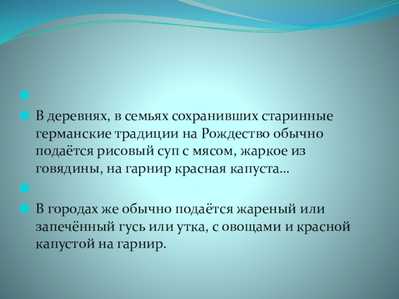 В деревнях, в семьях сохранивших старинные германские традиции на Рождество обычно