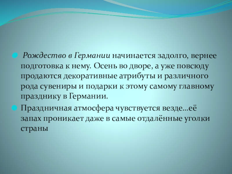 Слайд 2 Рождество в Германии начинается задолго, вернее подготовка к нему. Осень во