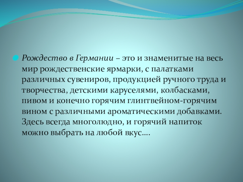 Слайд 21Рождество в Германии – это и знаменитые на весь мир рождественские ярмарки,