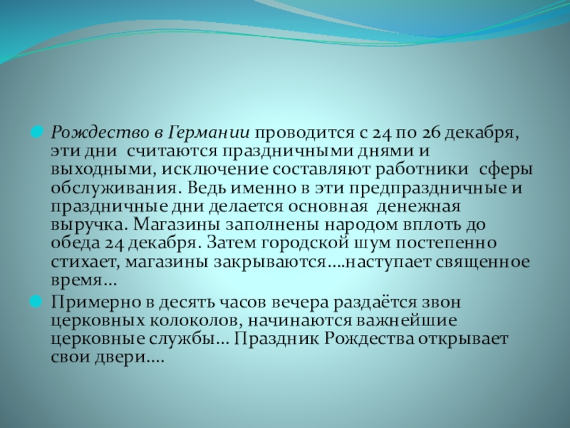 Слайд 66Рождество в Германии проводится с 24 по 26 декабря, эти дни считаются