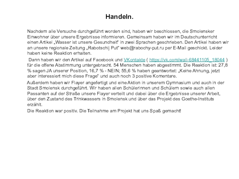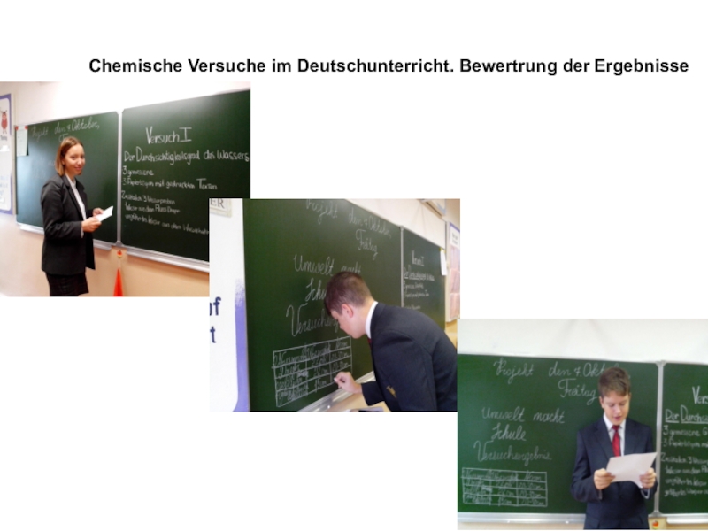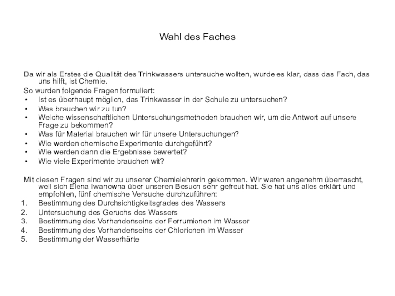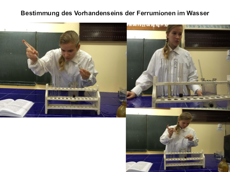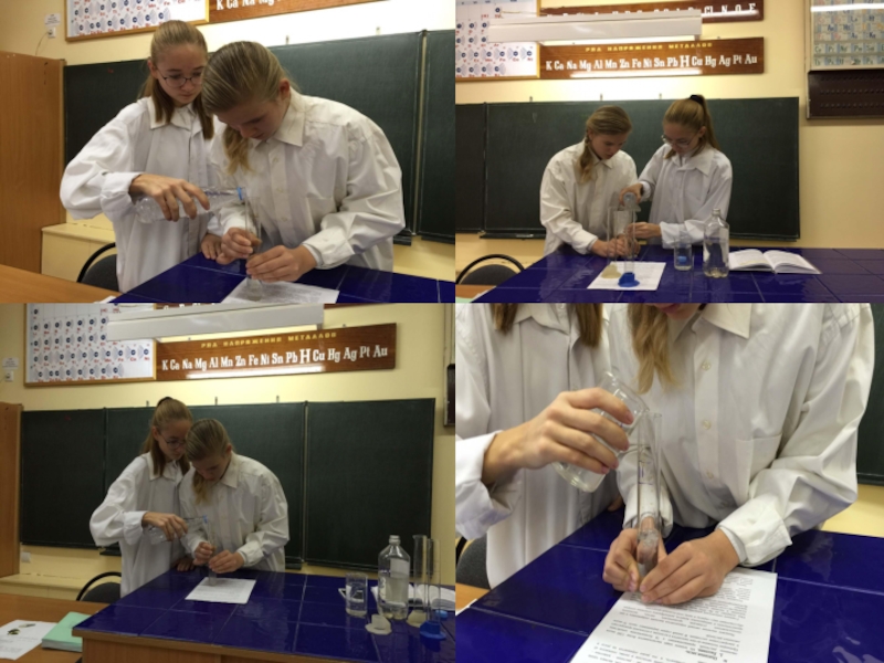 Die genommenen Wasserproben wurden in die gemessenen Glasgefäße zugegeben, die vorläufig auf die Papierbögen mit den gedruckten Texten gestellt worden waren. Jedes Glasgefäß wurde mit dem Wasser gefüllt und beobachtet, bei welchem Wasserspiegel der Text unlesbar wurde.