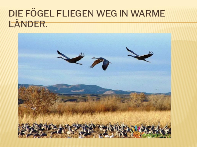 Слайд 13DIE FÖGEL FLIEGEN WEG IN WARME LÄNDER.
