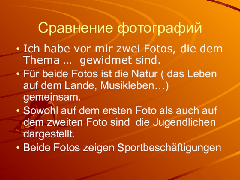 gewählt, weil meine Freunde da sind ( weil dieser Tag in meinem Gedächtnis blieb, weil ich es für unsere Zeitung brauche, weil diese Gegend auf mich einen großen Eindruck gemacht hat, weil ich mich für Sport interessiere, um es den Freunden zu zeigen).