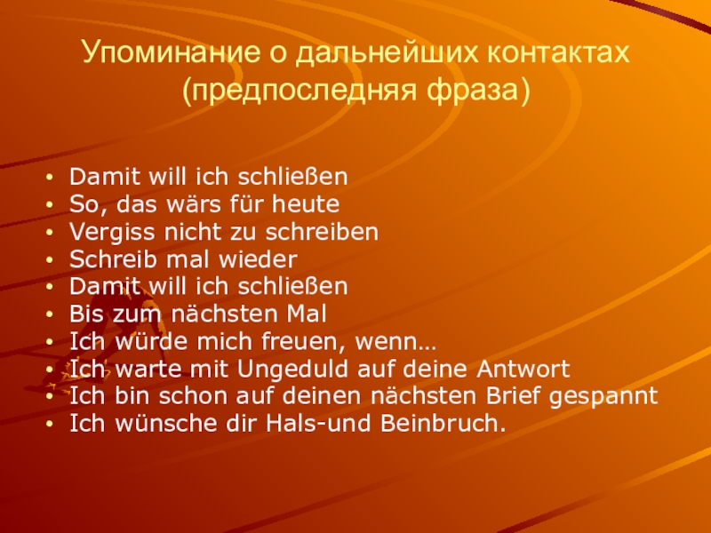 Слайд 9Упоминание о дальнейших контактах (предпоследняя фраза)
