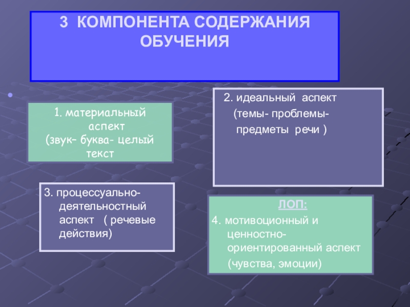 Слайд 33 КОМПОНЕНТА СОДЕРЖАНИЯ ОБУЧЕНИЯ