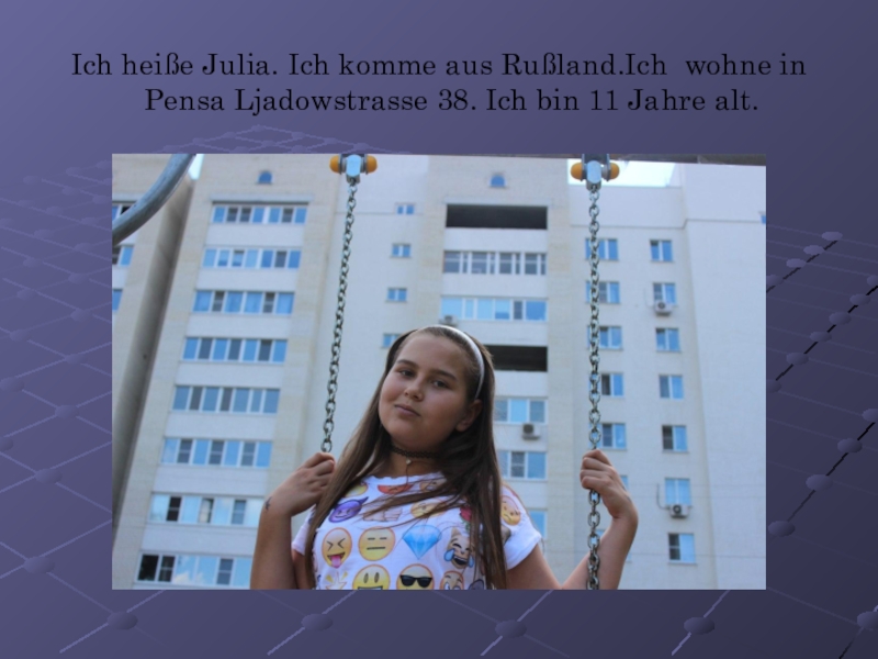 Слайд 25Ich heiße Julia. Ich komme aus Rußland.Ich wohne in Pensa Ljadowstrasse