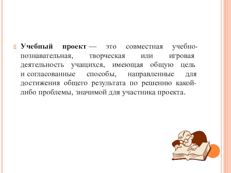 Учебный проект — это совместная учебно-познавательная, творческая или игровая деятельность учащихся, имеющая общую цель и согласованные способы, направленные для