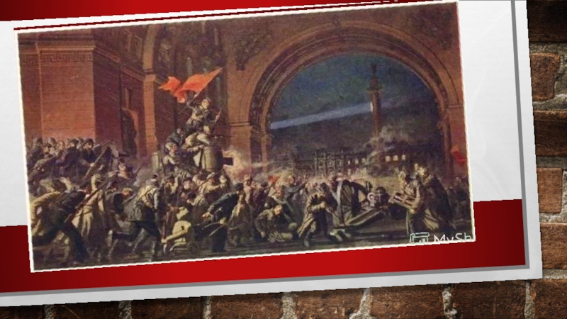 «ШТУРМОВАТЬ ЗИМНИЙ ХОДИЛИ НЕСКОЛЬКО РАЗ. ВОКРУГ БЫЛ ВЫСОЧЕННЫЙ ЗАБОР ИЗ ЖЕЛЕЗА, ПЕРЕБРАТЬСЯ ЧЕРЕЗ КОТОРЫЙ НЕ МОГЛИ. ОБОРОНУ ВО ДВОРЦЕ ДЕРЖАЛИ ЮНКЕРА И СПЕЦИАЛЬНЫЙ ЖЕНСКИЙ БАТАЛЬОН. ТОЛЬКО КОГДА ГРЯНУЛИ АРТИЛЛЕРИЙСКИЕ ЗАЛПЫ И ЗАЛП С КРЕЙСЕРА «АВРОРА» СОЛДАТЫ И МАТРОСЫ ПРОРВАЛИСЬ НАКОНЕЦ НА ТЕРРИТОРИЮ ДВОРЦА. СОПРОТИВЛЕНИЯ ПОЧТИ НЕ БЫЛО. ВСЕ, КТО БЫЛ ВО ДВОРЦЕ ПОПРЯТАЛИСЬ ЕГО КОМНАТАХ. ДОЛГО ИСКАЛИ ВРЕМЕННОЕ ПРАВИТЕЛЬСТВО. ОНИ ТОЖЕ СПРЯТАЛИСЬ В ОДНОМ ИЗ КАБИНЕТОВ.