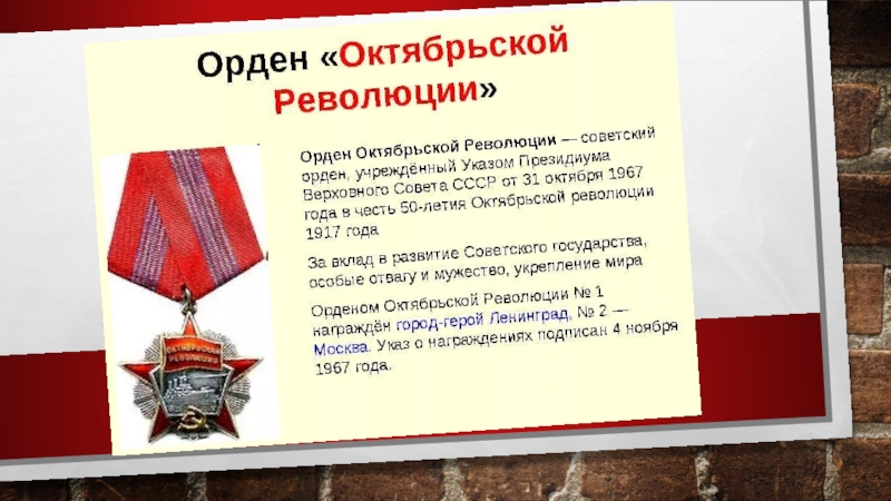 ОРДЕНА ОКТЯБРЬСКОЙ РЕВОЛЮЦИИ