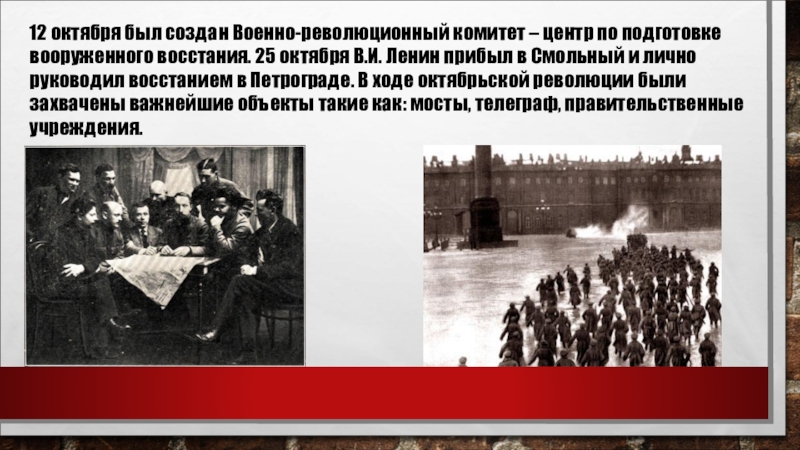 Слайд 1012 октября был создан Военно-революционный комитет – центр по подготовке вооруженного