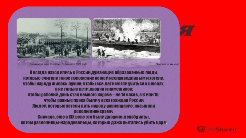 потом разночинцы-народовольцы, которые даже пытались убить царя.