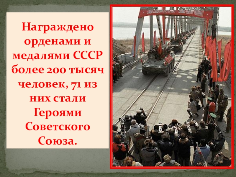 Слайд 39Награждено орденами и медалями СССР более 200 тысяч человек, 71 из