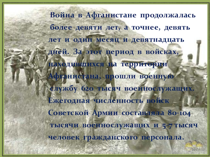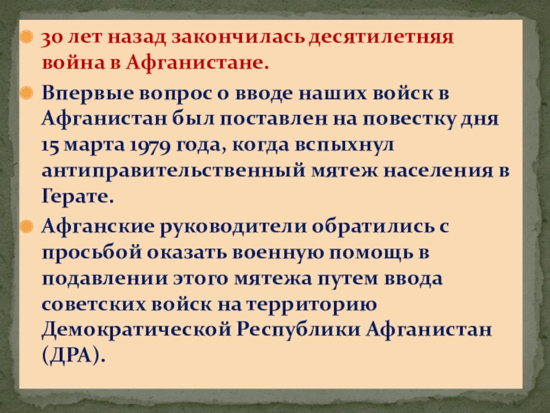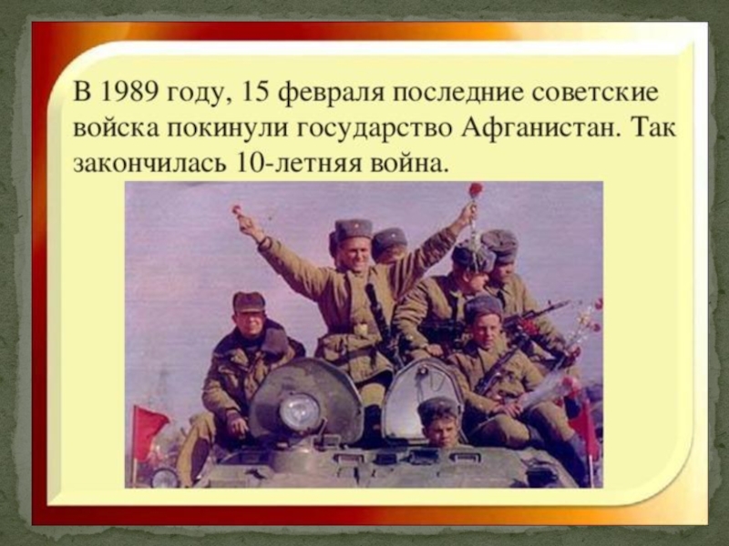 Слайд 1930 лет назад закончилась десятилетняя война в Афганистане.