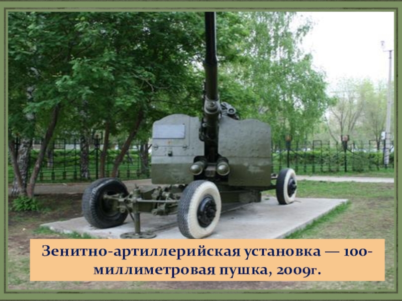 Слайд 9Зенитно-артиллерийская установка — 100-миллиметровая пушка, 2009г.