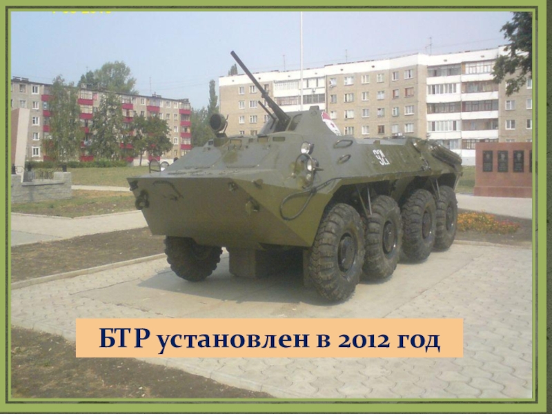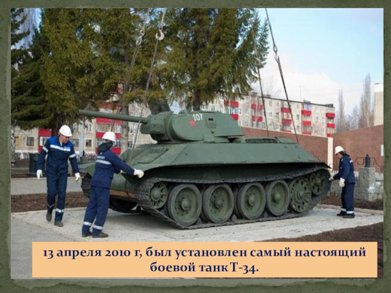 Слайд 1013 апреля 2010 г, был установлен самый настоящий боевой танк Т-34.