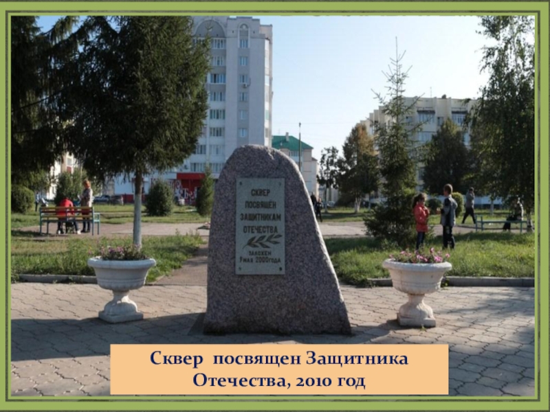 Слайд 8Сквер посвящен Защитника Отечества, 2010 год