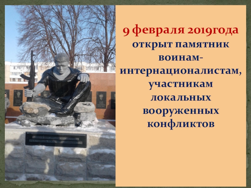 9 февраля 2019года открыт памятник воинам-интернационалистам, участникам локальных вооруженных конфликтов
