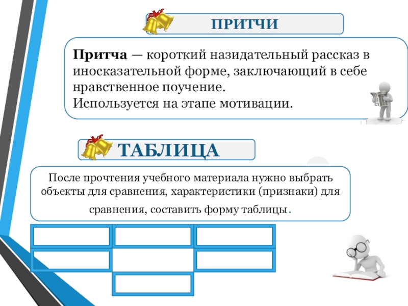 После прочтения учебного материала нужно выбрать объекты для сравнения, характеристики (признаки) для сравнения, составить форму таблицы.