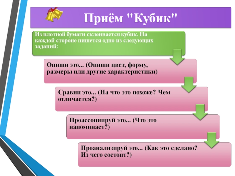 Прием возможно использовать на любом этапе урока и в качестве домашнего задания.