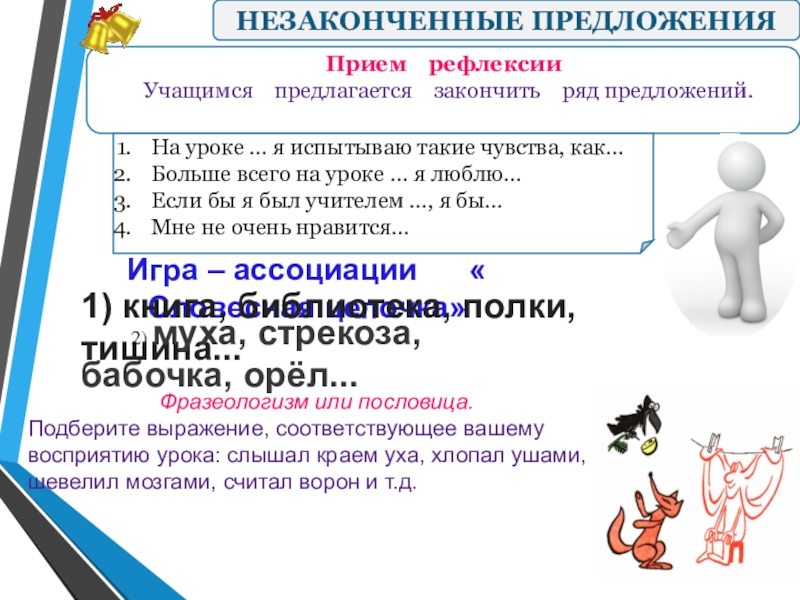 Подберите выражение, соответствующее вашему восприятию урока: слышал краем уха, хлопал ушами, шевелил мозгами, считал ворон и т.д.