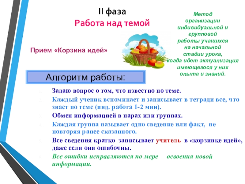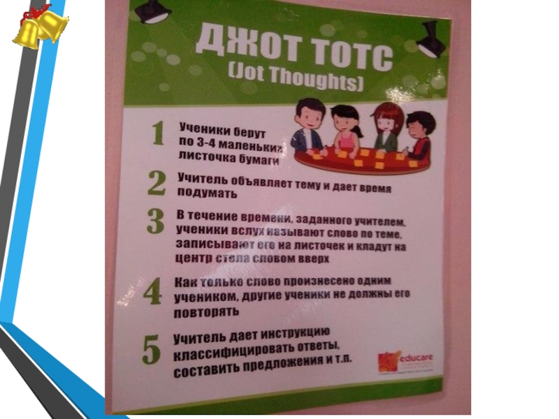 Учитель ставит задачу группам – записать на листе основные моменты новой темы, относящиеся к вопросу.
