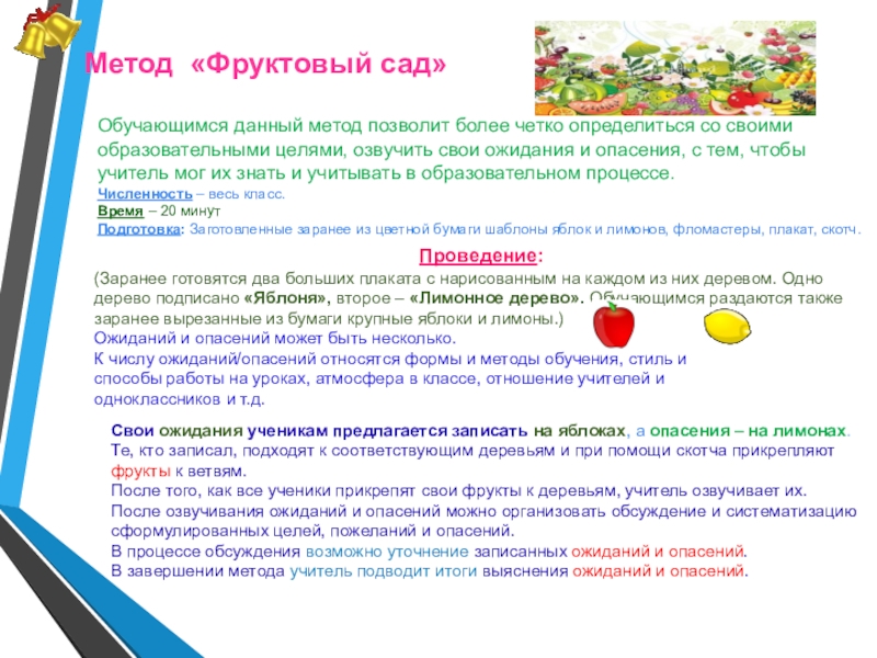 Свои ожидания ученикам предлагается записать на яблоках, а опасения – на лимонах.