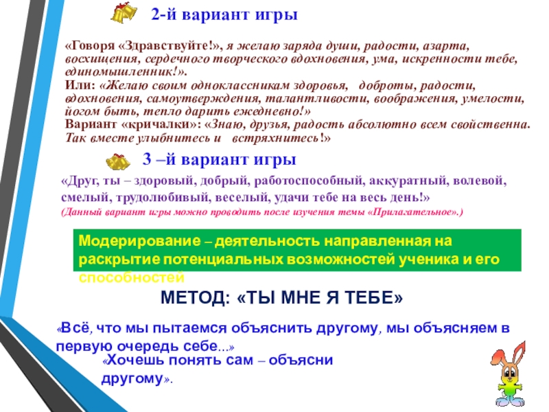 Модерирование – деятельность направленная на раскрытие потенциальных возможностей ученика и его способностей