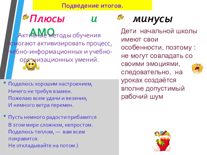 В завершении метода учитель подводит итоги выяснения ожиданий и опасений.